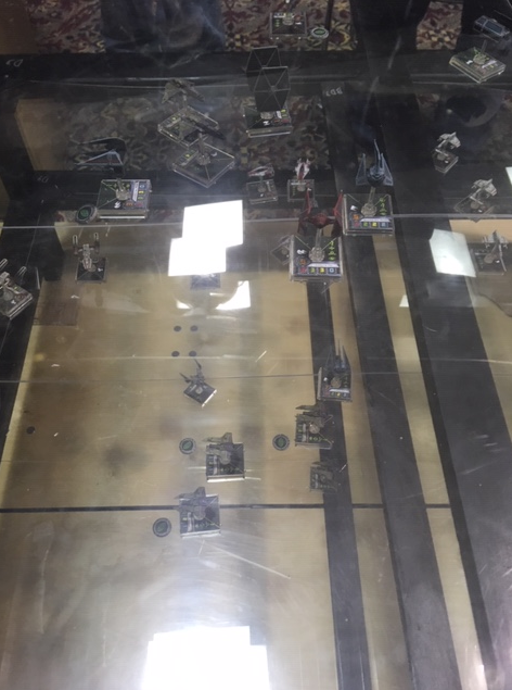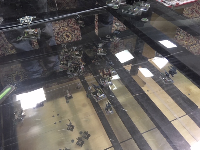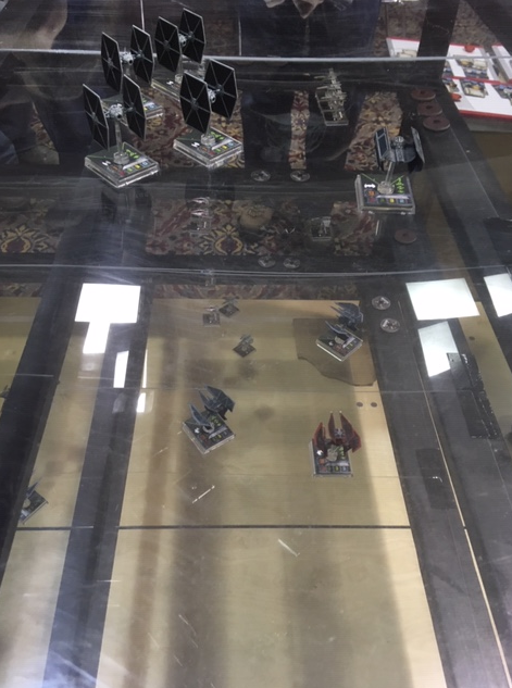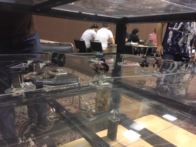 X Wing on an ENORMOUS multi-level acrylic board. Jason is a splendid GM and a crafter after my own heart.