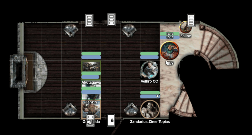 Tenzin decides to lift up a bearskin and discover the sources of the scritching nose, and manages to scare up a swarm of rats underneath, which then attack them. The group begins to fight the rats, with Tenzin using a flurry of blows to attack them, and Grughilda moving to flank and taking a whack at the rats with her sword. Akutagawa is still up and decides to attack the rats with his Dog Slicer, rolling an 18 and hitting the rats, but they are immune to precision damage, But the rats disperse and run away after Akutagawa’s second hit, with some of them scattering into the other room.