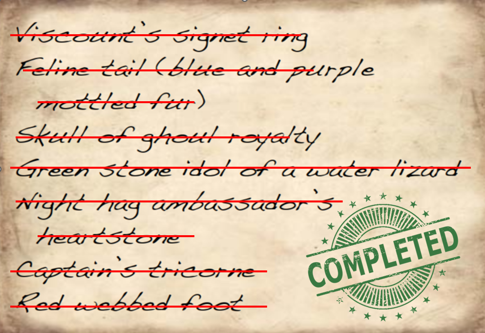 On the back of the address label attached to the package, the party finds a note from Cesadia Wrentz, chief investigator at the Silent Agency in Thrushmoor, describing irregular persistent activities around the newly appointed sheriff. The note is partially damaged or incomplete, hinting at possible conspiracies or investigations involving the sheriff and cult influences. The description of the woman dropping off the package matches a known ally named Winter, raising suspicions about her true allegiance or possible doppelganger involvement. Doppelgangers have been a recurring element in the campaign, complicating trust and identity.